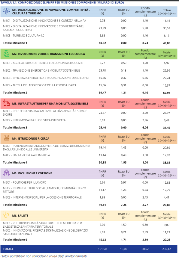Gli importi a titolo di Next Generation EU saranno erogati soltanto tramite sette programmi: due interamente finanziati da NGEU (Dispositivo per la ripresa e la resilienza e REACT-EU) e cinque solo in parte finanziati da NGEU ad integrazione del bilancio pluriennale (Sviluppo rurale, Resc-EU, InvestEU, Orizzonte Europa e Fondo per una transizione giusta).