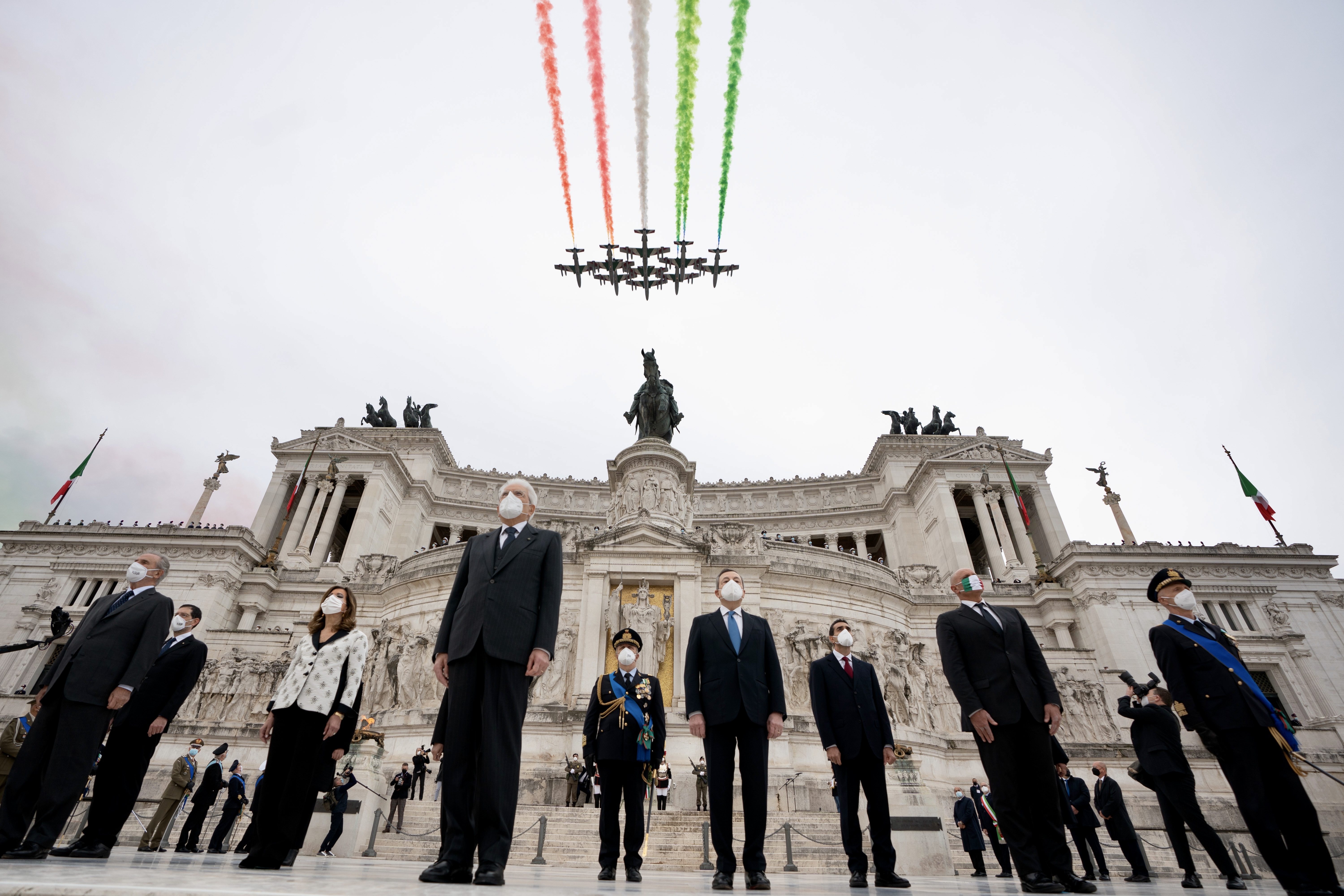 Roma. Il Presidente del Senato, Maria Elisabetta Alberti Casellati, e le altre Autorità accompagnano il Capo dello Stato nella salita della scalea dell'Altare della Patria.