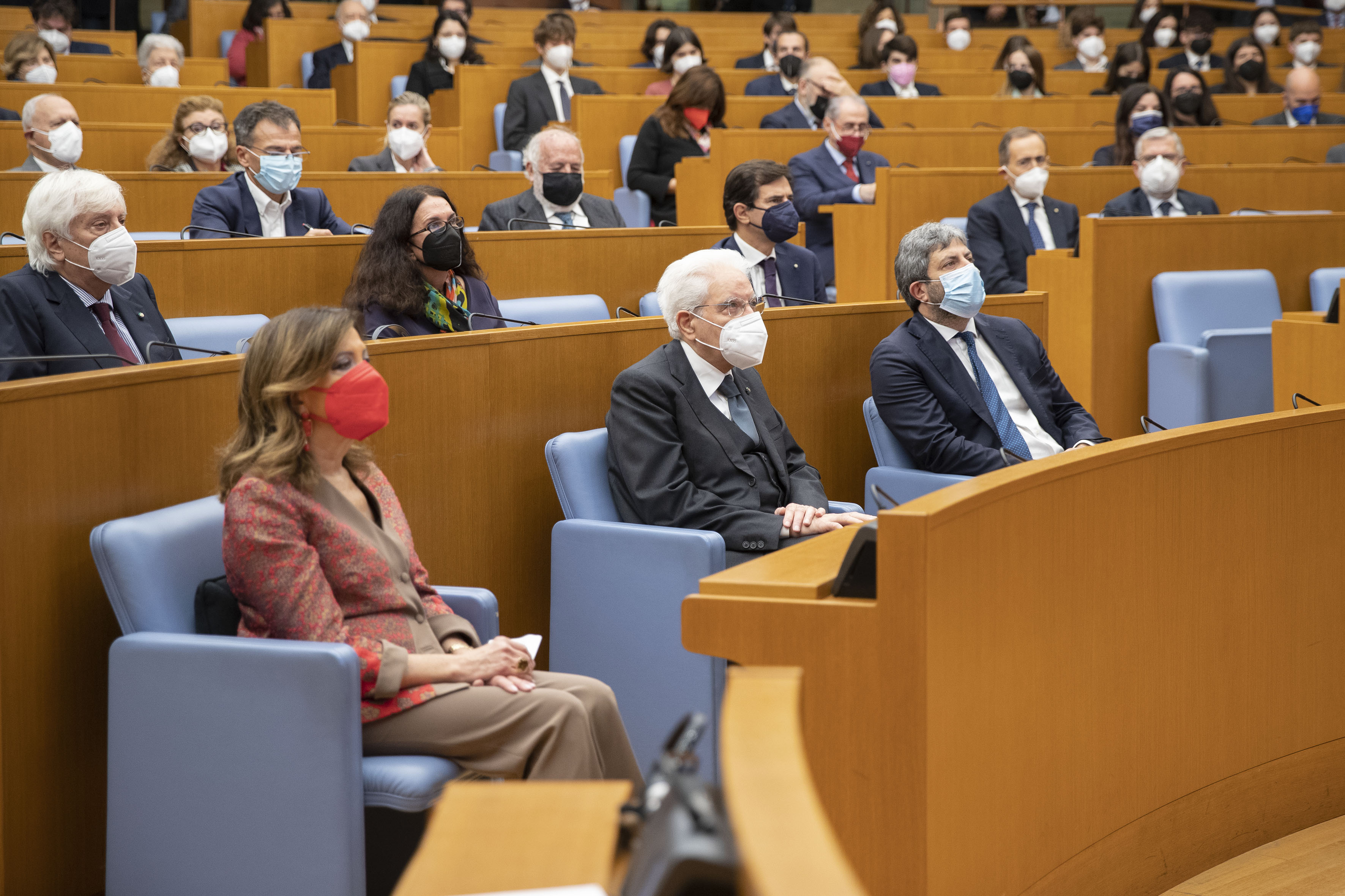 Nella foto, il Presidente del Senato, Maria Elisabetta Alberti Casellati, il Capo dello Stato e il Presidente del Consiglio, Mario Draghi.