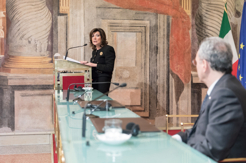 Il Presidente del Senato della Repubblica, Maria Elisabetta Alberti Casellati, durante il suo intervento.