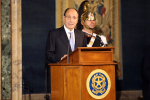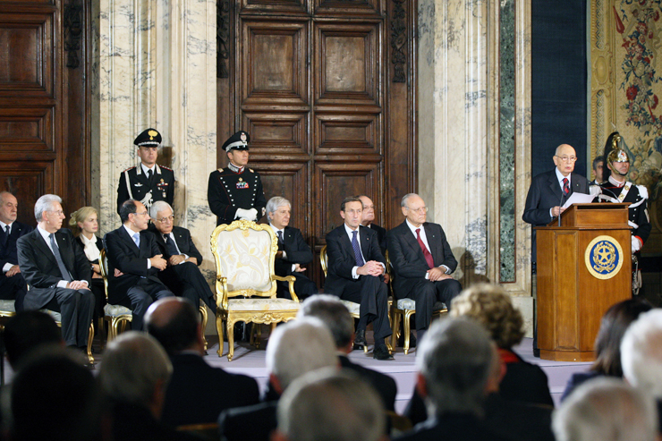 Il Presidente della Repubblica, Giorgio Napolitano, pronuncia il discorso durante la cerimonia per lo scambio di auguri di fine anno tra le alte cariche dello Stato