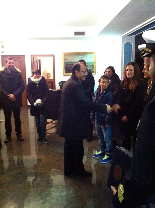 Il Presidente Schifani ha incontrato Massimiliano La Torre e Salvatore Girone all'aeroporto di Ciampino, dove i due marinai erano in transito con i loro familiari.