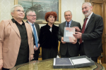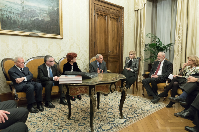 Nella foto il Presidente Grasso incontra il Ministro dell'Istruzione, dell'Università e della Ricerca, Valeria Fedeli, il Rabbino Capo della Comunità Ebraica di Roma, Riccardo Di Segni, e il Presidente del CNR, Massimo Inguscio.