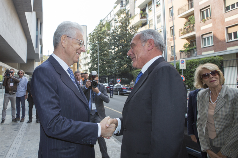 Il Presidente Grasso viene accolto da Mario Monti, Presidente dell'Università.