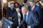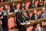 Il Presidente del Senato, Pietro Grasso, e il Vice Presidente della Camera dei deputati, Simone Baldelli, fanno ingresso in Aula.