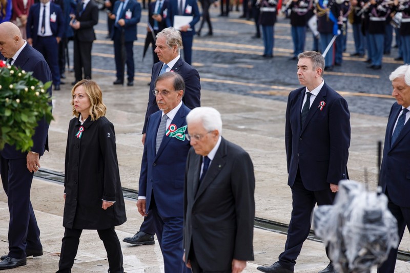 - Il Presidente del Senato Ignazio La Russa, alla presenza del Presidente della Repubblica Sergio Mattarella, ha partecipato alle celebrazioni della Festa nazionale della Repubblica, con il Presidente della Camera dei deputati, Lorenzo Fontana, il Presidente del Consiglio dei Ministri Giorgia Meloni, il Vice Presidente della Corte costituzionale, Giovanni Amoroso, e il Ministro della difesa Guido Crosetto. In foto la deposizione di una corona d'alloro all'Altare della Patria e la rivista militare in via dei Fori Imperiali per il 78° anniversario della proclamazione della Repubblica