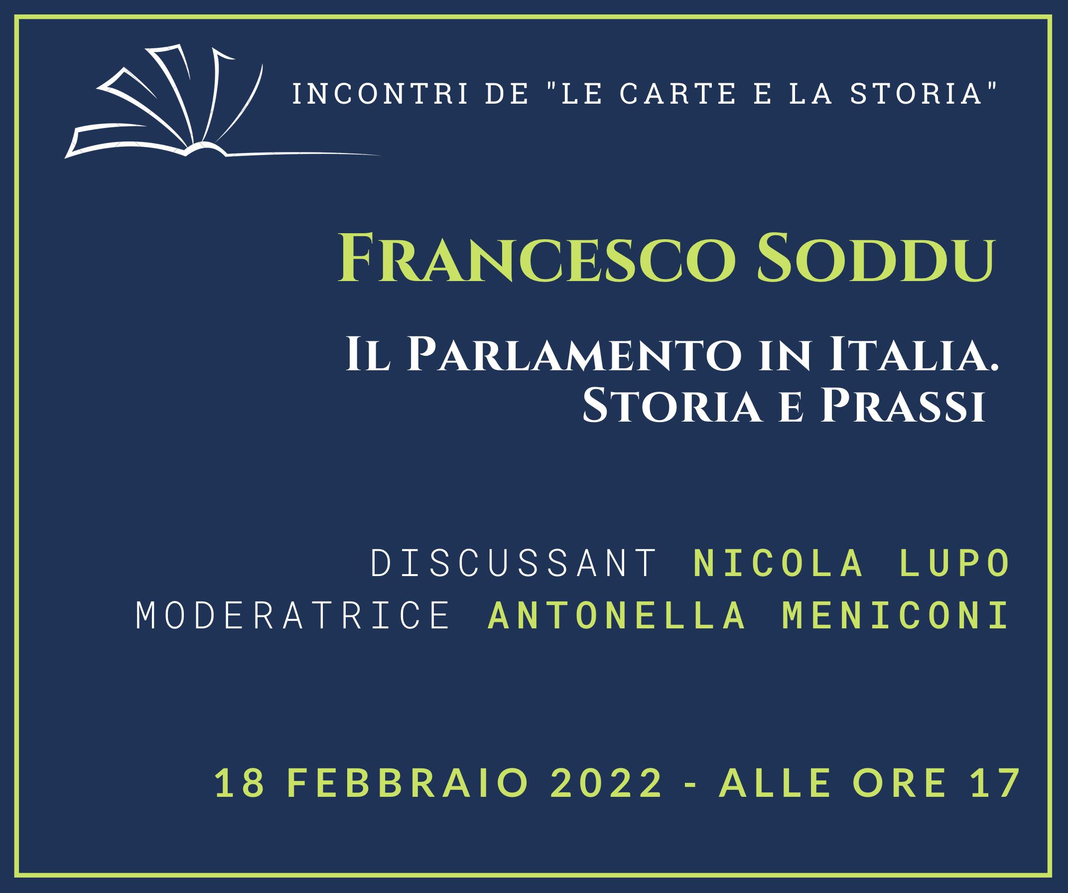 Ancora più centrato sui temi parlamentari è stato l'incontro che ha avuto luogo lo scorso 18 febbraio su Il Parlamento in Italia. Storia e prassi, protagonista Francesco Soddu, affiancato da Nicola Lupo (discussant) e Antonella Meniconi (moderatrice). Soddu, autore di molti contributi sulla storia del Parlamento italiano (tra cui ricordiamo le monografie In Parlamento: deputati e senatori nell'età della Destra e La Sardegna in Parlamento: caratteri e profili di parlamentari in età liberale), ha evidenziato le insufficienze della nostra storiografia parlamentare rispetto a quella di altri Paesi, soffermandosi su diverse questioni: l'oscillante centralità dell'istituzione parlamentare (forte in età liberale, diminuita dalla Grande Guerra e indebolita nella storia repubblicana, fino al rischio di trasformare il Parlamento in arena di conflitti più che luogo di mediazione), da valutare sia a livello simbolico, sia alla luce della sua effettiva rappresentatività e del funzionamento della sua 'macchina' organizzativa; la partecipazione ai lavori parlamentari, tra proteste di assenteismo, crescente specializzazione, concorrenza di impegni, anche sul piano bicamerale; la burocrazia parlamentare, nella sua articolazione e nella fisicità dei luoghi in cui svolge la sua attività.