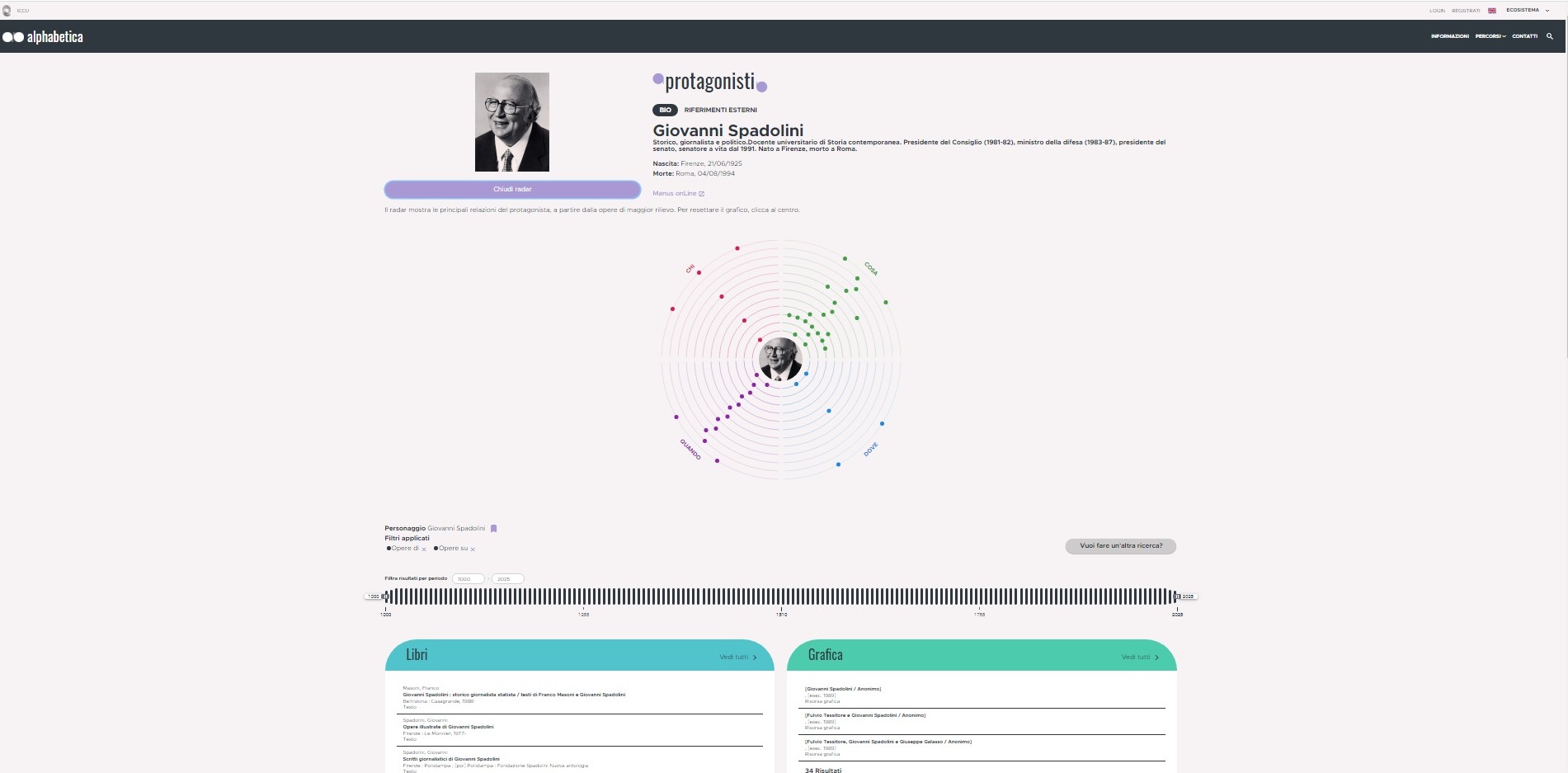 Il 2021 si è concluso con una significativa novità sul fronte dei servizi bibliografici nazionali. Il 16 dicembre scorso, presso la Sala "Giovanni Spadolini" nel palazzo del Collegio Romano, sede del Ministero della Cultura, è stato presentato il nuovo portale Alphabetica, realizzato dall'Istituto centrale per il catalogo unico delle biblioteche italiane e per le informazioni bibliografiche (ICCU) per esplorare il patrimonio culturale conservato nelle oltre 6.500 biblioteche aderenti al Servizio bibliotecario nazionale (SBN) e nelle istituzioni partner di specifici progetti di valorizzazione.