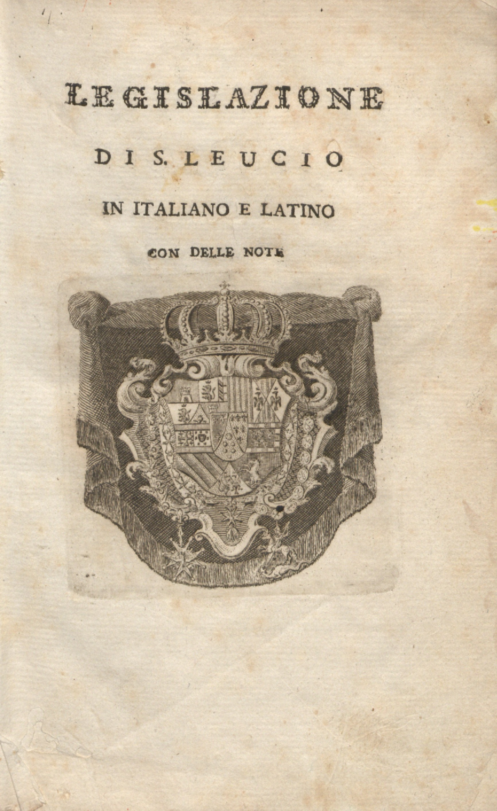 Non essendo certamente l'ultimo de' miei desiderj quello di ritrovare un luogo ameno, e separato dal rumore della Corte, in cui avessi potuto impiegare con profitto quelle poche ore di ozio, che mi concedono da volta in volta le cure più serie del mio Stato; le delizie di Caserta, e la magnifica abitazione incominciata dal mio Augusto Padre, e proseguita da Me, non traevano seco coll'allontanamento dalla Città anche il silenzio, e la solitudine, atta alla meditazione ed al riposo dello spirito, ma formavano un'altra Città in mezzo alla Campagna, colle istesse idee del lusso, e della magnificenza della Capitale. Pensai dunque nella Villa medesima di scegliere un luogo più separato, che fosse quasi un romitorio, e trovai il più opportuno essere il sito di S. Leucio.