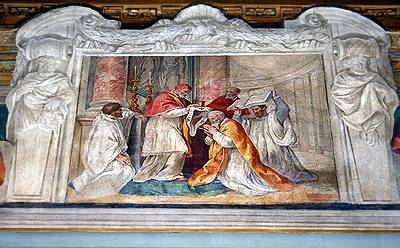Vi sono collocati i busti di Marconi e di Canonica, il fregio è probabilmente opera di Pietro Paolo Baldini e raffigura episodi del pontificato di Pio IV. Il soffitto della sala, in legno dorato con travature e scomparti, è seicentesco e, probabilmente, è stato sovrapposto ad un altro precedente.