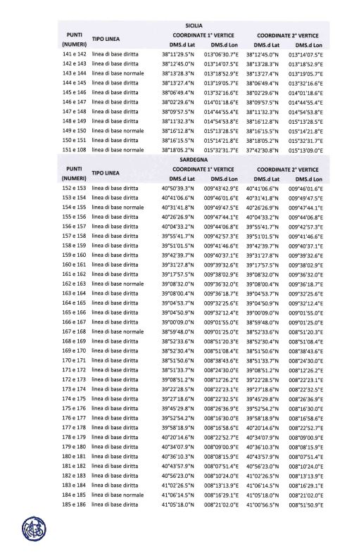 3. Le carte nautiche indicanti le linee di base del mare territoriale italiano, unitamente alla lista delle coordinate geografiche dei punti per i quali passano le dette linee, sono affisse a cura delle autorità marittime in tutti i porti e gli approdi della Repubblica.