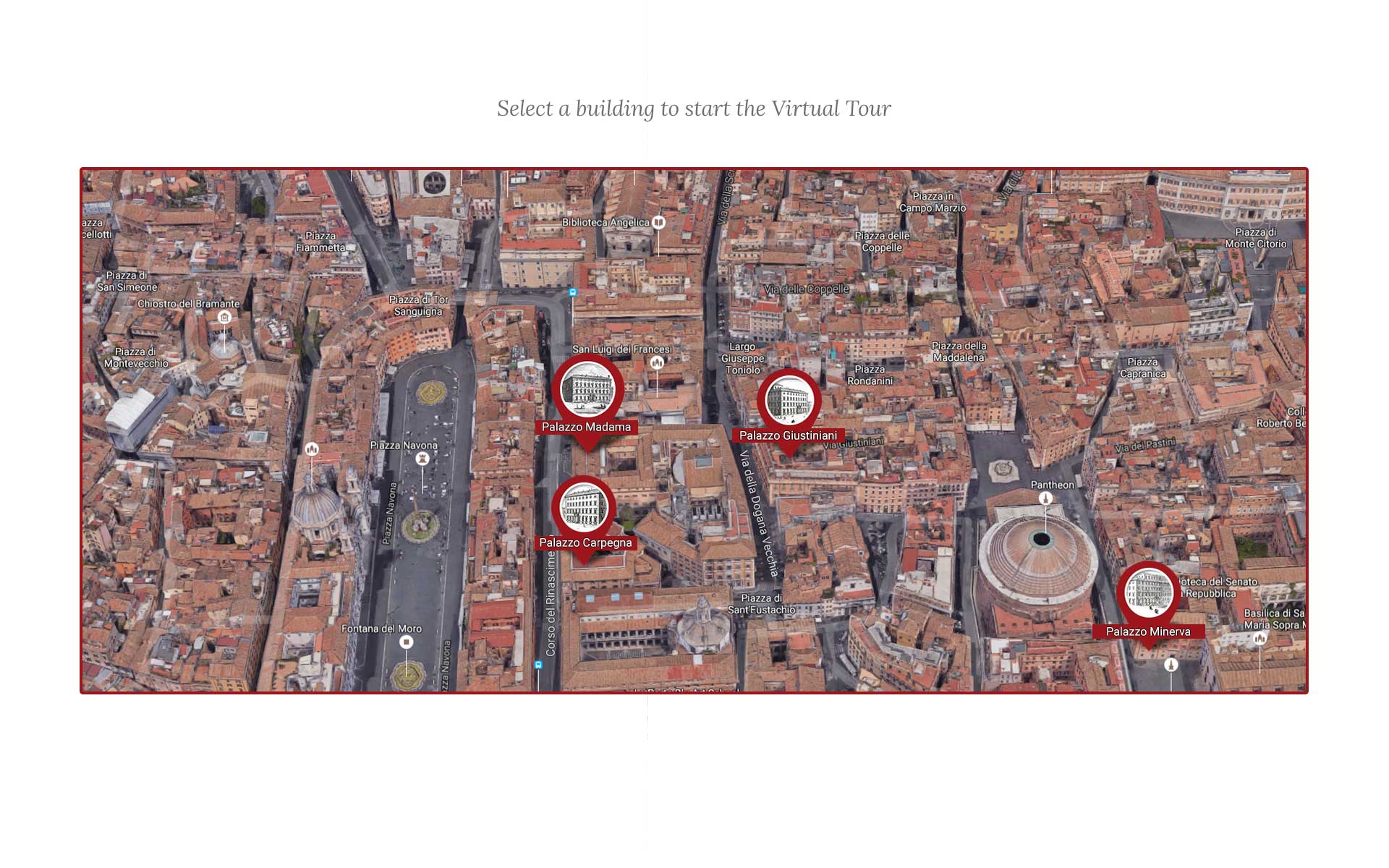 The virtual tour of the Senate offers an easy way for visiting the most important halls of Palazzo Madama, Palazzo Giustiniani, Palazzo Carpegna and Palazzo Minerva, using a three-dimensional model of the rooms but also providing a written and audio description of the artistic and historical information.